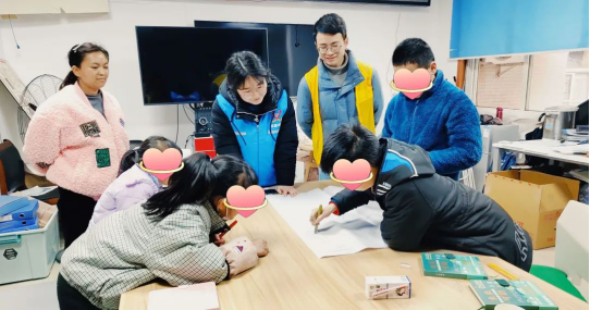在第五期服务中,为了帮助儿童们认识不同情绪并掌握改善情绪的办法,拉近朋辈感情,促进他们与家人间的情感联结,工作人员带领大家进行了团体会谈,引导他们吐露心声,分享自身在学习、生活中的烦恼,并借助问卷调查来找出他们面对的群体性情感困惑问题。针对大家共同的情绪问题,工作人员不仅进行了积极引导,给予了暖心建议,还结合了有趣的互动游戏“叠高高”“情绪变变变”“画中的心愿”等,寓教于乐,增强团体动力,激发儿童的探索欲、学习欲。