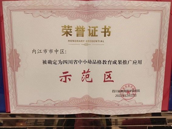 近日,四川省2023年品格教育成果推广暨学术交流研讨活动在成都双流举行,内江市市中区作为首批中小幼品格教育成果推广应用示范区代表接受颁奖授牌。