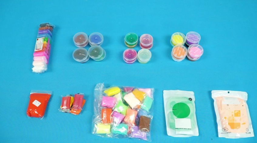 新华社记者送检的9款彩泥样品。新华社 发(李浩杨 摄)