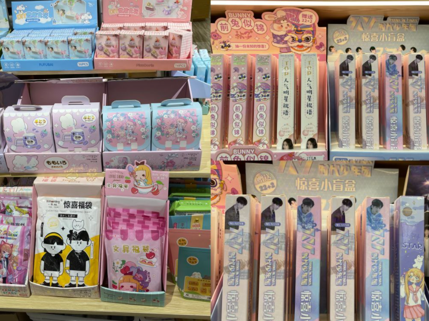 广州一些小学附近商店中显著位置摆放着各色各样价格不菲的待售学具盲盒。(新华社记者 杨淑馨 摄)