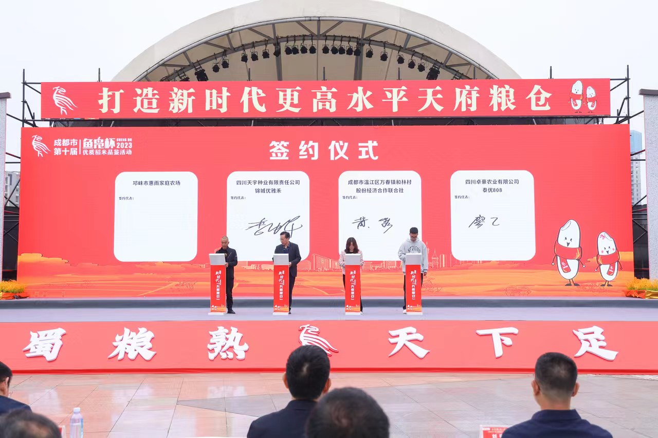 地处“天府之国”核心区,打造新时代更高水平的“天府粮仓”是成都发展现代农业的契机,也是责任担当,抓好“农业芯片”,则是打好种业翻身仗的基础。今年,成都市农业农村局还征集了往届“鱼凫杯”部分获奖品种,在绕城生态带温江段锦绣水韵区域和新都区斑竹园街道三河村进行集中种植展示,并组织区(市)县农技、种子等业务部门、供种单位、种子经营户、种植农户“看禾选种”,推进“农企对接”,为广大企业、农户选购优良品种和加快优良品种推广应用构建了更加直观的平台。