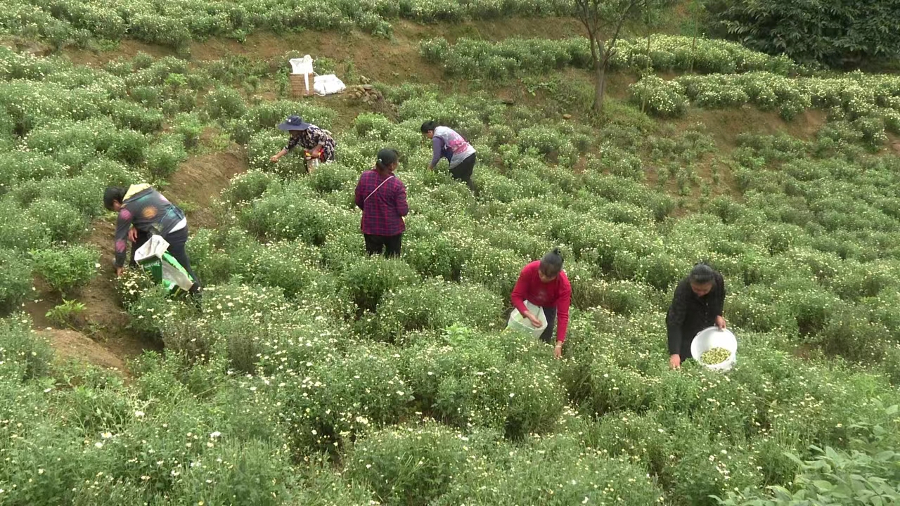 近年来,花园村切实贯彻“两山理论”,大力发展菊花种植、加工。2021年从江苏引进菊花产业,头一年种植了300亩,2022年种植了500亩,今年发展到了1000亩,群众积极性比较高,预计2024年种植面积能达到2000亩。