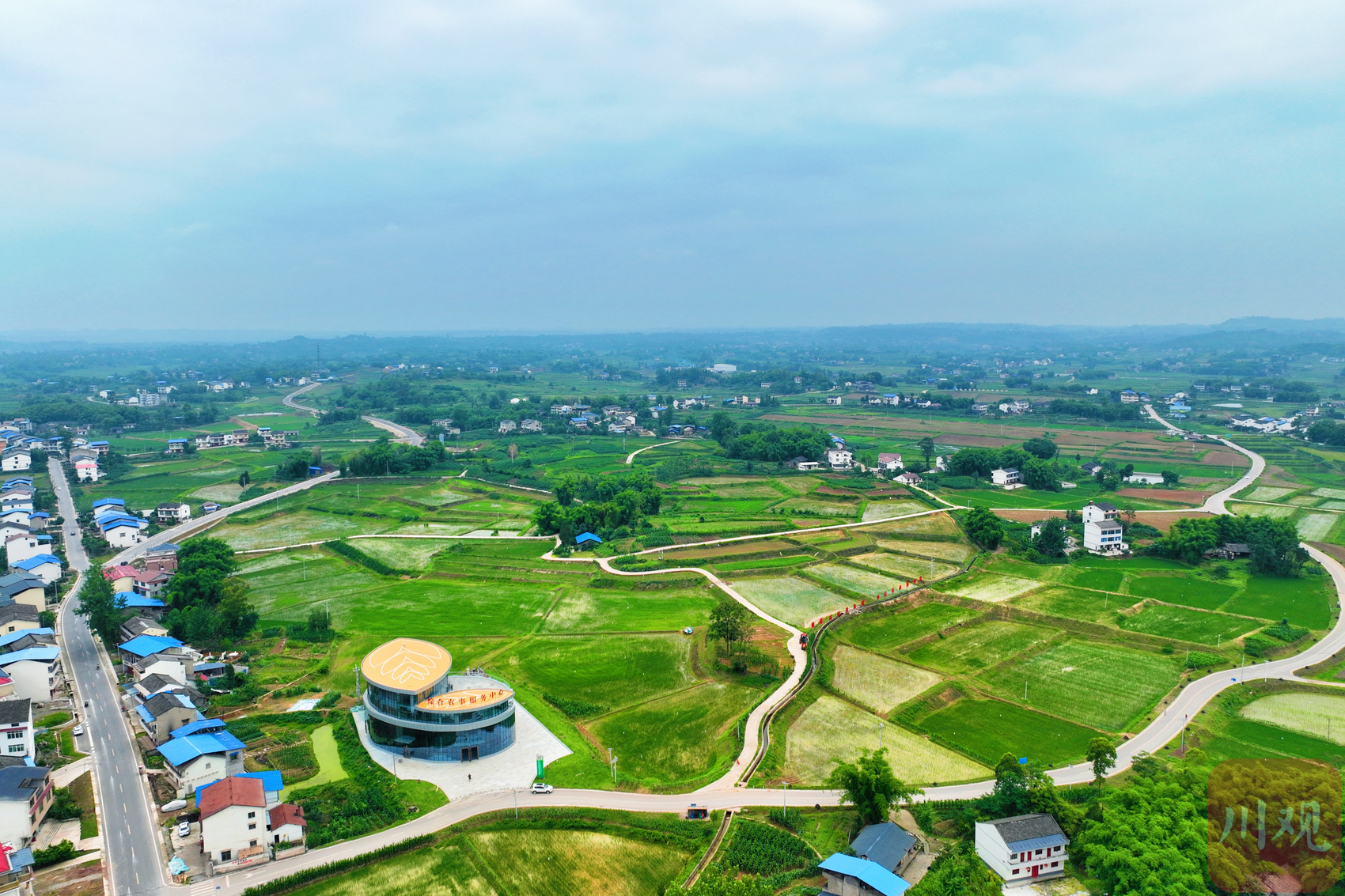 这是一个“年轻”的园区。2019年,岳池县制定《岳池县粮油现代农业园区总体规划》,以苟角镇水浮山村、曾拱桥村等6个村为中心启动建设粮油乡村振兴示范片。园区建立“龙头企业+专业合作社(家庭农场)+农户”的经营模式,所有土地由村集体协调“打包”交国有企业统一调型、耕种,农户、村集体、国有企业按比例分红。