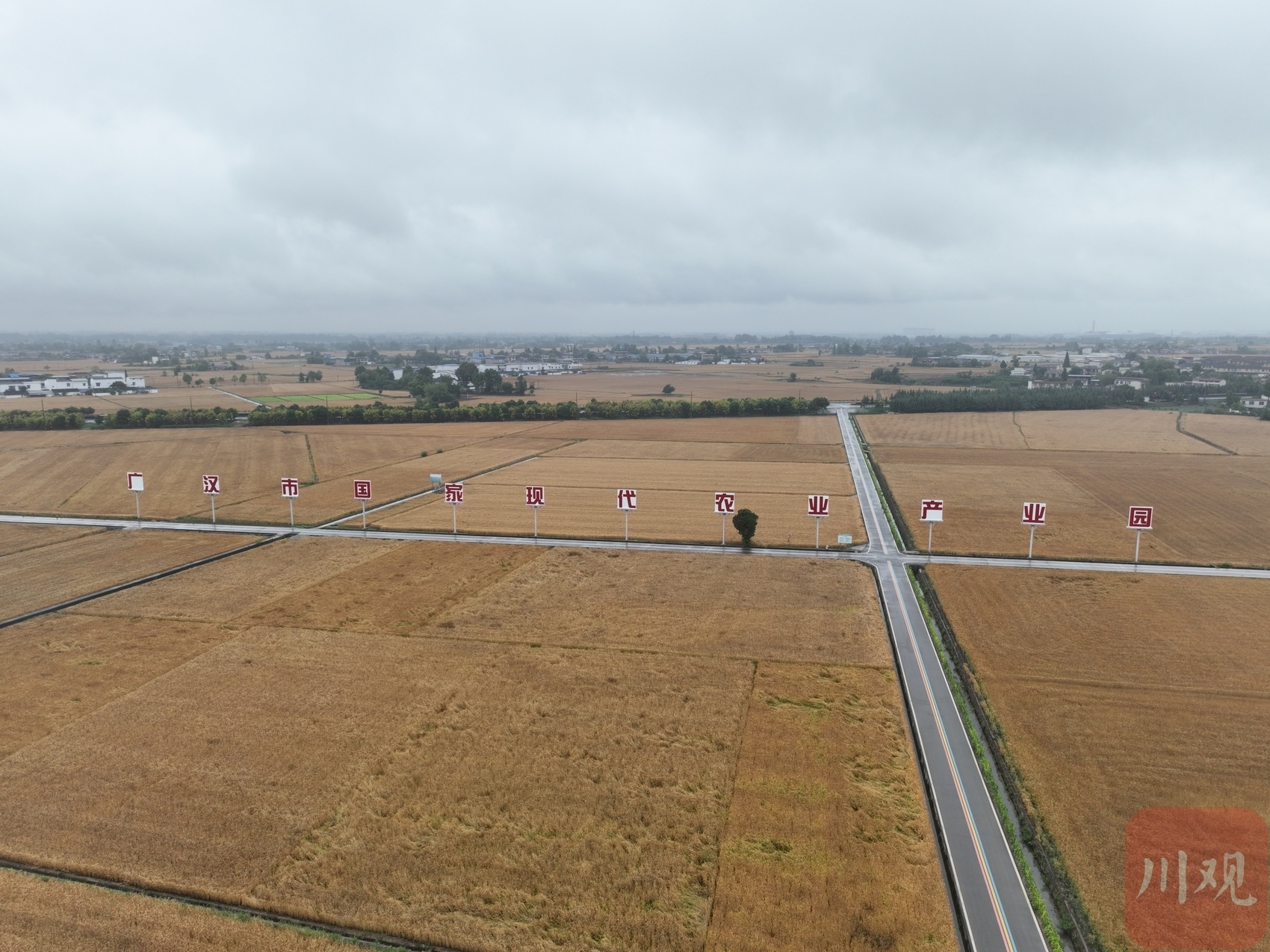 5月初,德阳广汉市国家现代农业产业园内,已经黄熟的小麦正待收割。