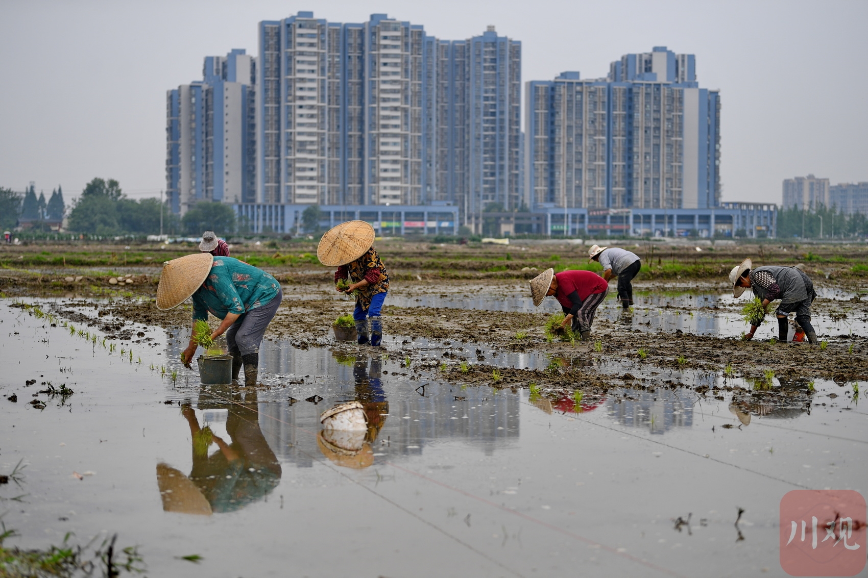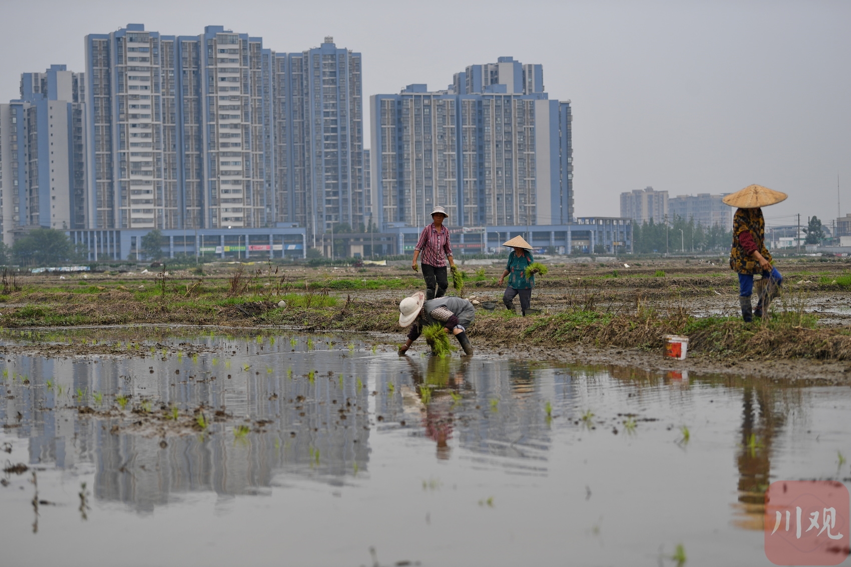5月17日,在成都市大邑县稻乡渔歌现代农业产业园区内,当地村民正在为杂交水稻培育种子。