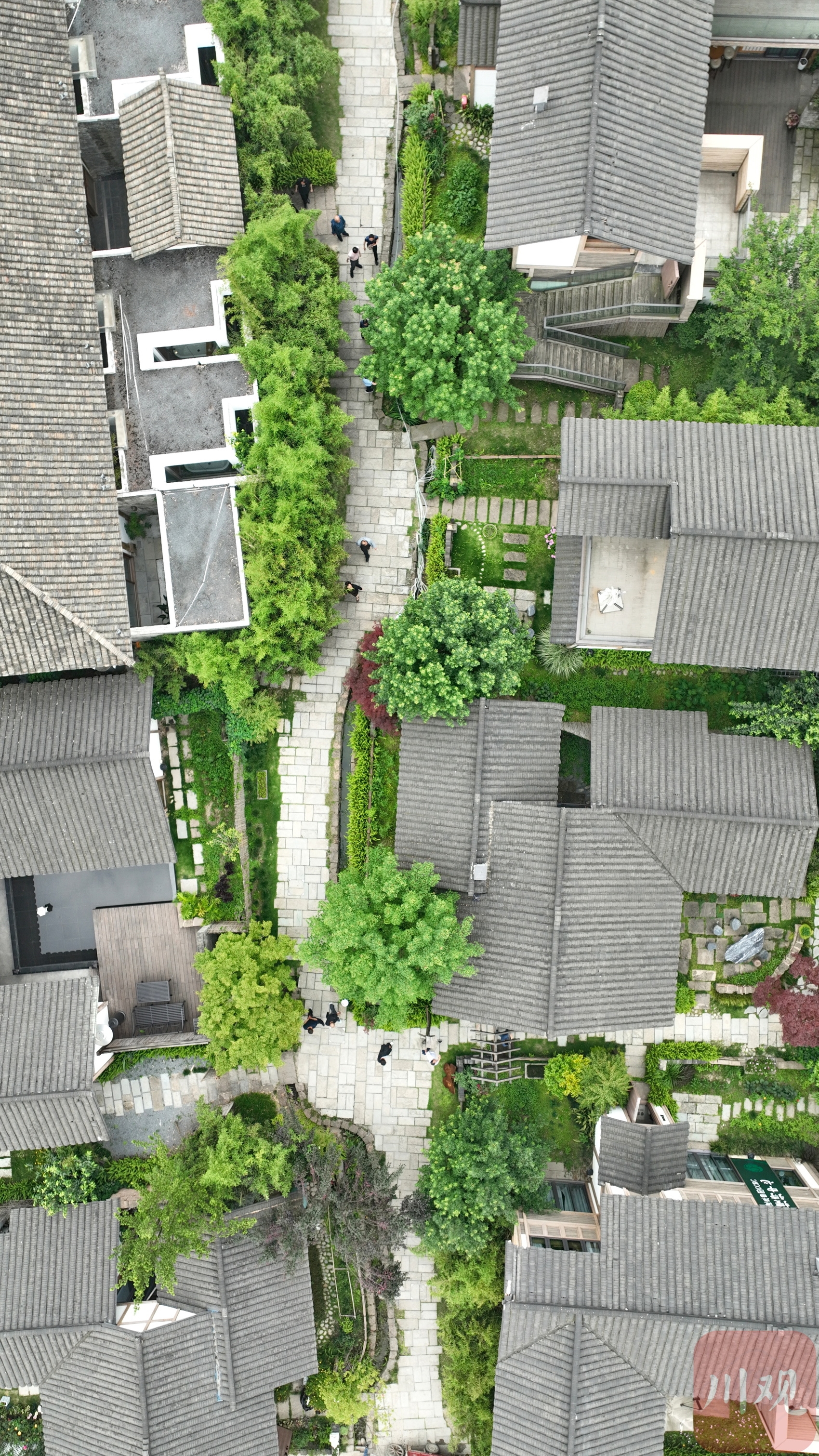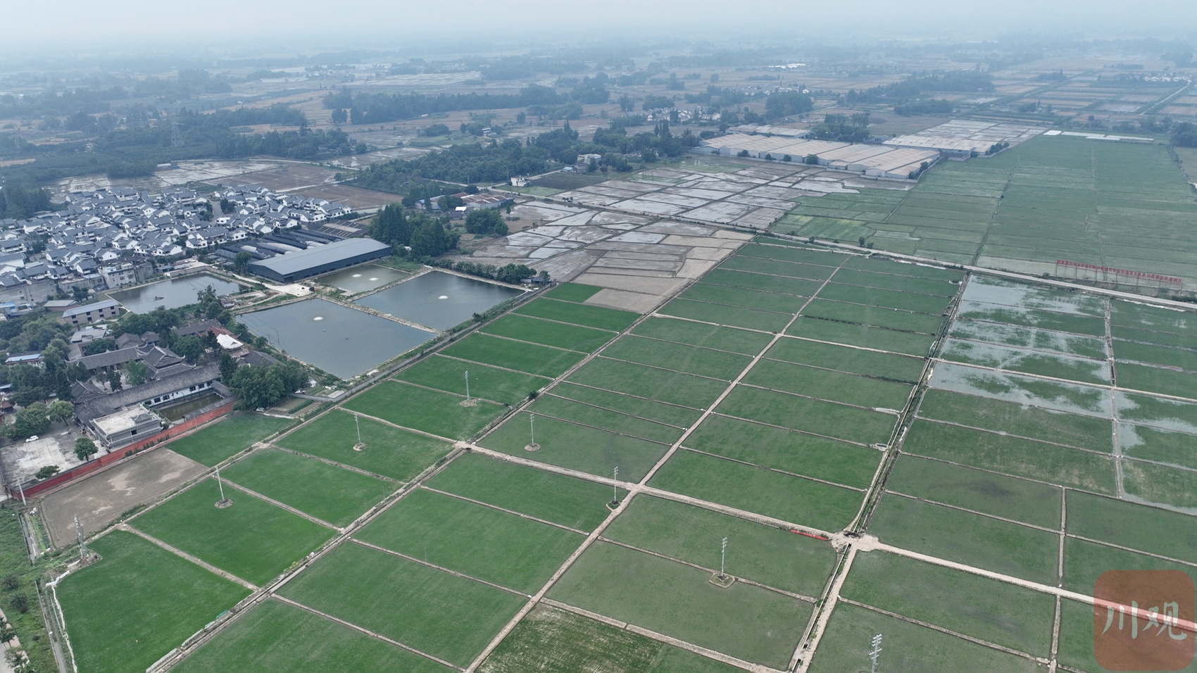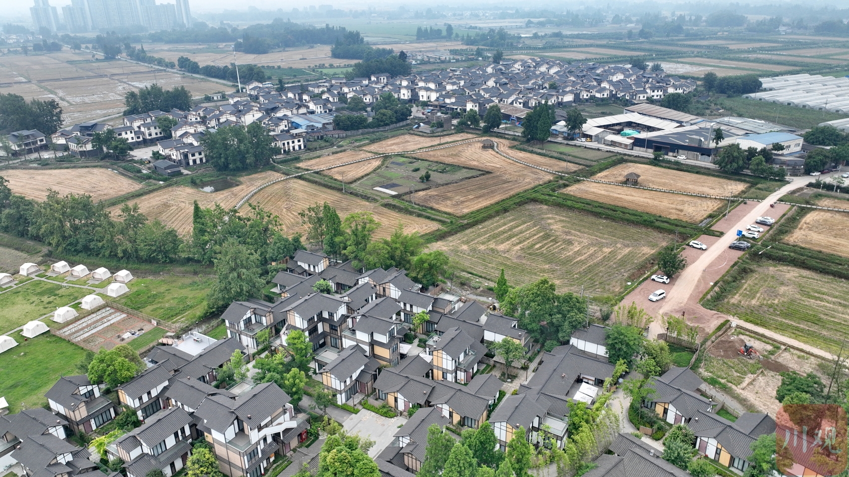 5月17日,俯瞰成都市大邑县稻香渔歌现代农业产业园,只见新村和产业融为一体,一幅乡村振兴的画面。