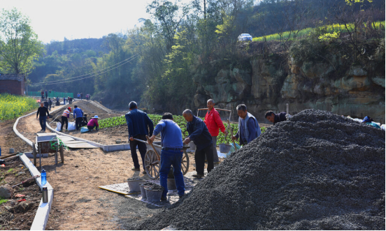 连日来,自贡市大安区新民镇富华村石梯河小流域综合治理施工现场建设如火如荼,工人们正在紧锣密鼓地铺筑彩色便道、移栽河堤绿植,铆足干劲保证项目如期完工。