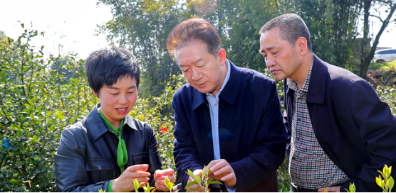 杨林兴(中)带队到叙永镇金桂村油茶园区,调研督导油茶产业发展、农旅融合发展等情况 记者 牟科 摄