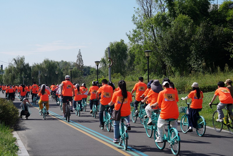 当日下午两点,骑手们从千林里绿道入口有序出发,沿成都绕城绿道西段向天府芙蓉园方向进发,抵达终点后原路返程,往返全程约 20 公里。正值秋日,道路两旁层林尽染,骑手们穿行于红叶与桂香之间,实现 “车在景中行,人在画中游” 的沉浸式体验。本次活动摒弃传统竞速模式,参与者可按自身节奏自由骑行,完成全程即可获得完赛礼包。