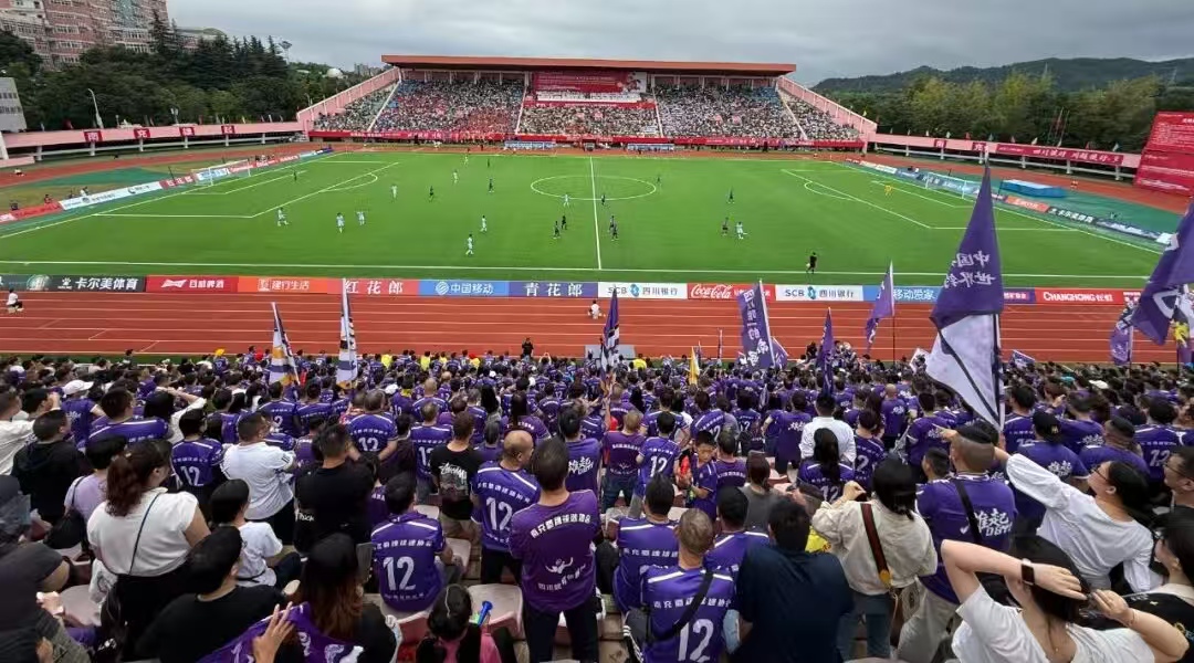 比赛现场,西华师范大学国际学院的40余名来华留学生自发组建“啦啦队”,他们手持助威道具,激情高呼“南充雄起!南充必胜!”。现场球迷的呐喊声与赛场上球员的拼抢声交织在一起,响彻云霄,成为赛场边最动人的风景。