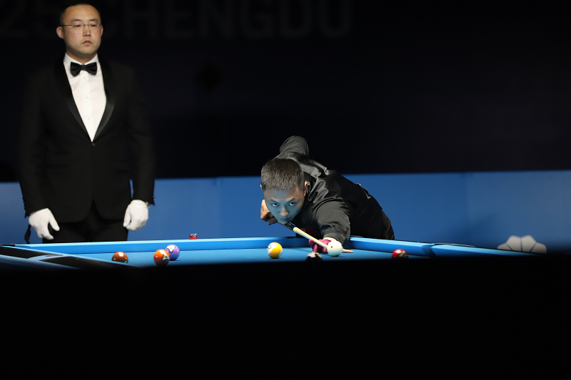 本网讯(记者 冯庄 实习记者 秦智城 文/图)8月11日傍晚六时,成都世运会台球项目第二个比赛日的焦点赛事在中国民用航空飞行学院天府校区体育馆拉开战幕。男子花式台球 10 球 C 组预赛中,中国代表队的两位名将党金虎与薛珍麒上演了一场扣人心弦的 “内战”,双方在球桌上展开激烈厮杀,分数交替上升,精彩的杆法与精准的走位引得现场观众掌声雷动。
