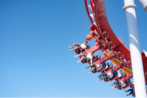 亮点:360°螺旋翻转+90°垂直俯冲,双脚悬空如巨龙腾空,试运营游客称“灵魂跟不上身体”。