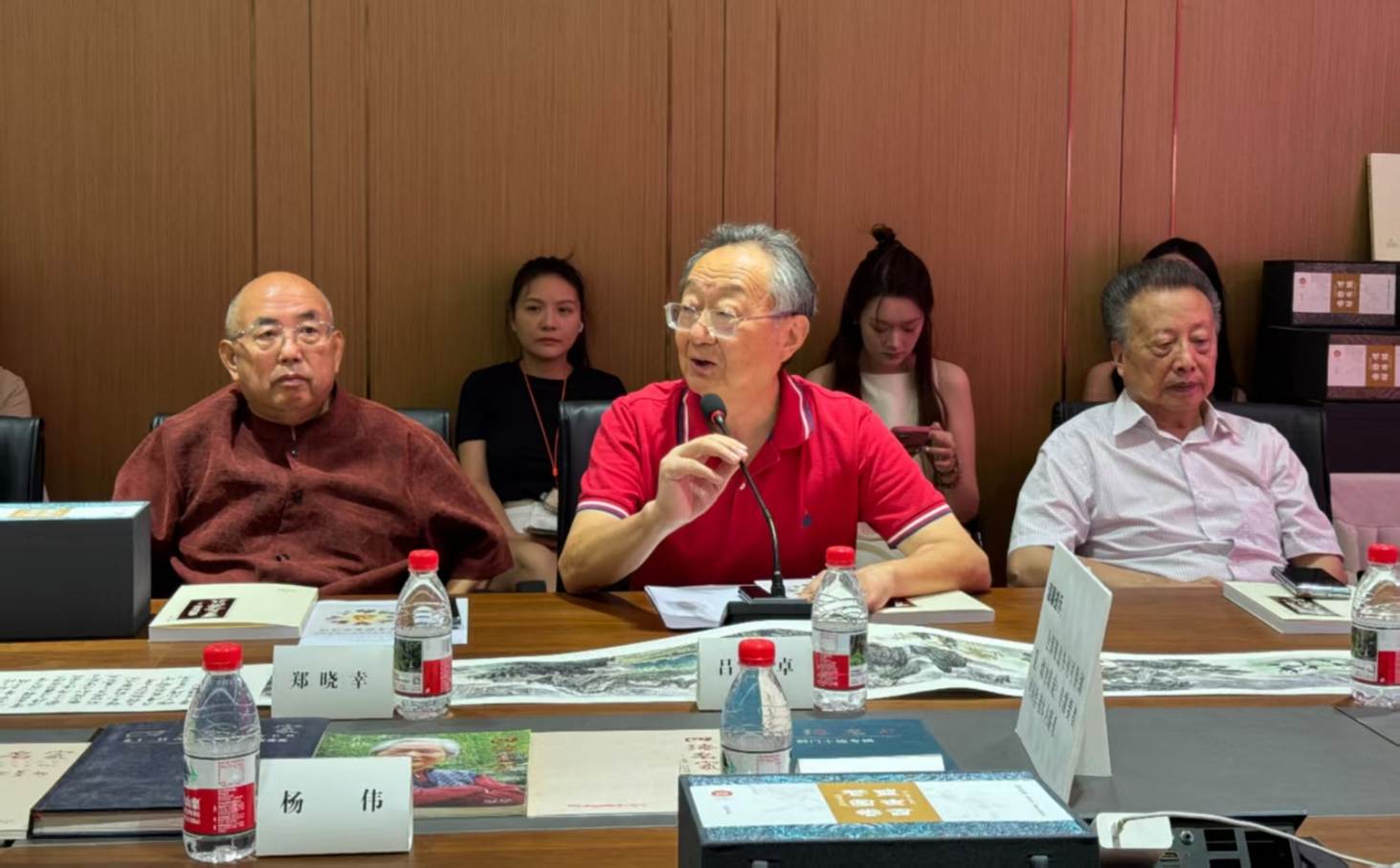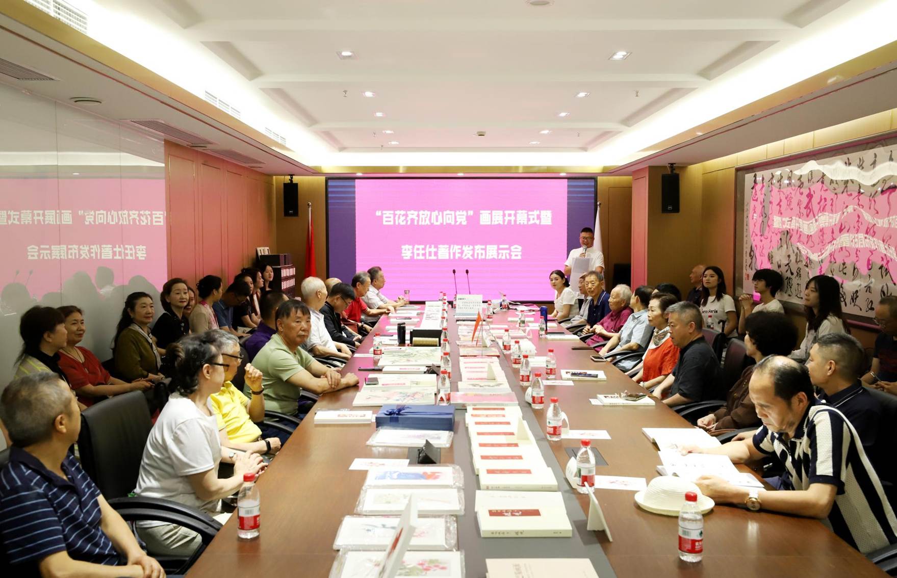 本网讯(记者 马工枚/文 冯庄/图)7月26日,四川省文旅厅社会组织联合党委指导,四川四海画院、四川聚力兴蓉集团有限公司主办,聚力四海美术馆、成都鑫周文化传播有限公司承办的"百花齐放心向党"画展暨李任仕著作发布展示会,在成都温江商会大厦聚力四海美术馆举办。 省人大原副主任李洪仁宣布"百花齐放心向党"主旋律画展正式开幕,省文旅厅社会组织联合党委书记石勇和副书记盛宗毅见证了李任仕著作发布和画展开幕。省公安厅原厅长吕卓、中国非遗保护协会副会长郑晓幸、新华发行集团原党委书记朱丹枫等出席了开幕式并作了主题发言。参加本次画展开幕式的还有八十多名来自宣传部门、文旅系统、社会公益组织、企业界和文艺界的人士。画院顾问、省公安厅原厅长吕卓
