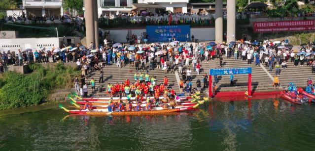 首先进行的是龙舟比赛。随着开始的号令声响起,4艘龙舟同时出发,在河面上展开角逐。在1200米的赛程中,各队伍齐心协力、奋力划桨,最终决出胜负。