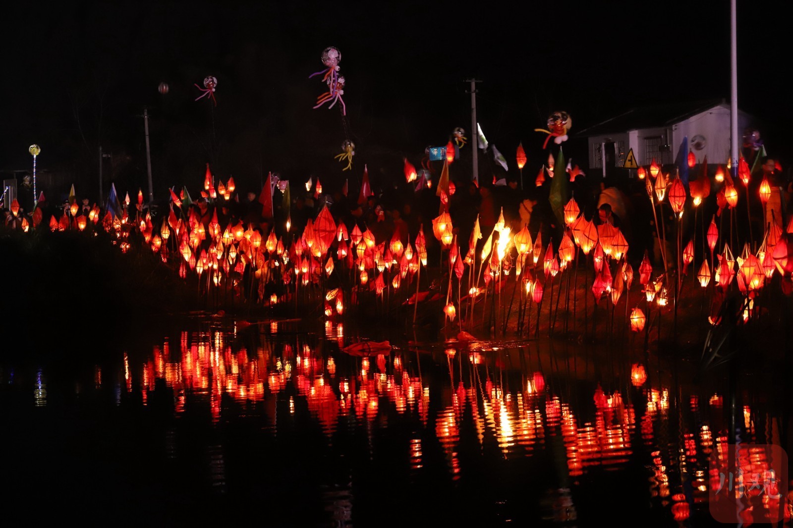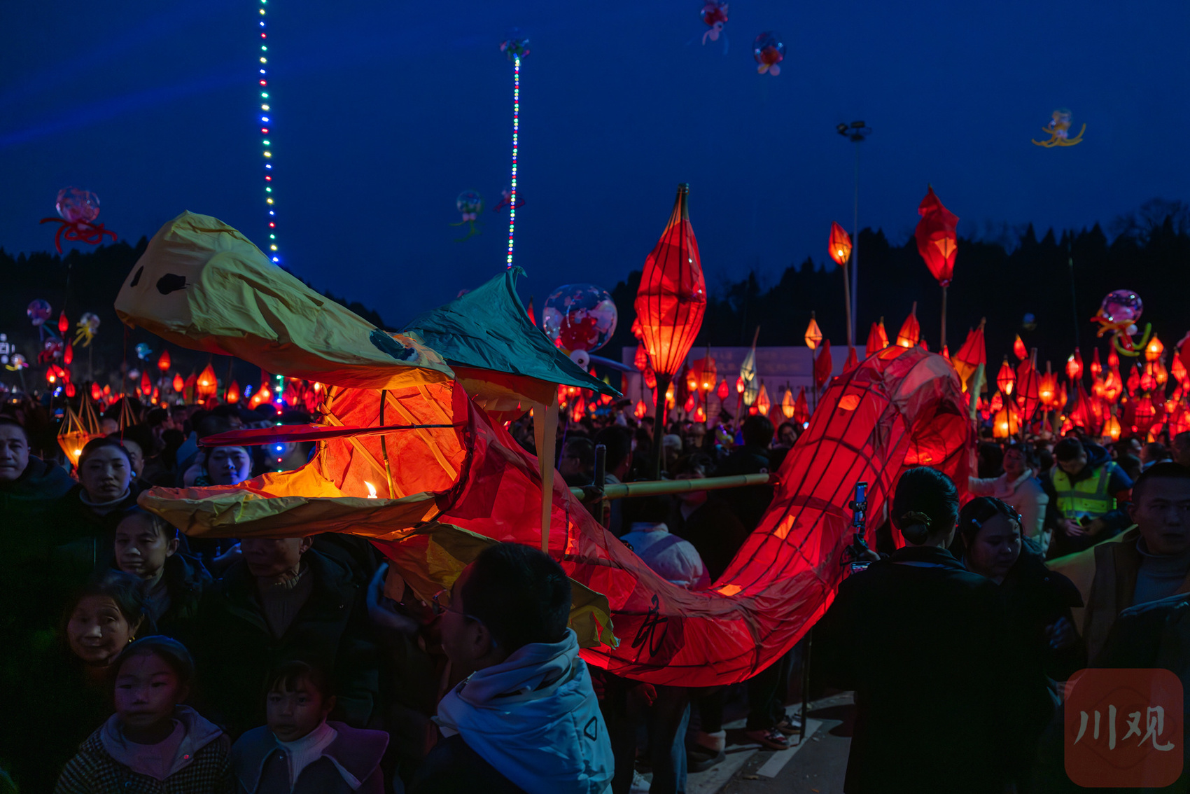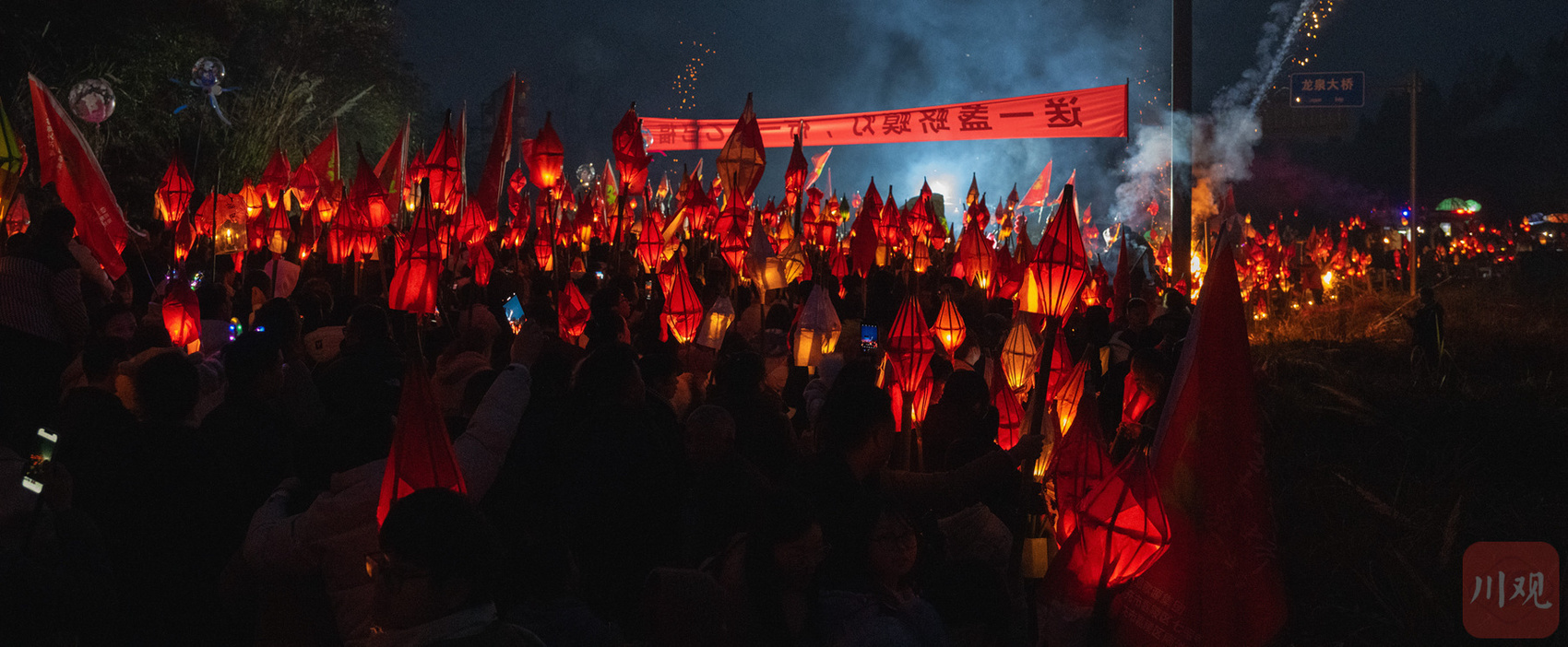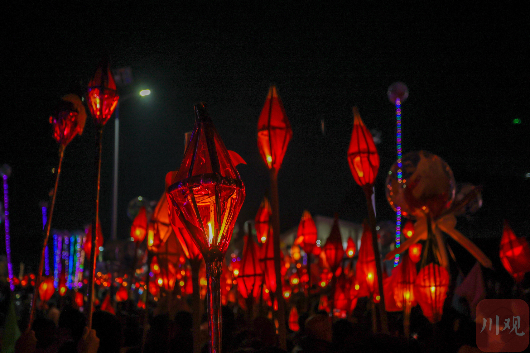2月11日,万余市民和游客共聚遂宁市蓬溪县文井镇白鹤林村,参加一年一度在这里举行的“送蛴蟆”民俗文化活动。与此同时,南充多地也同样举行了规模盛大的“送蛴蟆” 祈福活动。大人小孩成群结队举着蛴蟆灯,唱着“送蛴蟆”歌谣,将“蛴蟆”插在田间地头送走,祈求新的一年,远离疾病、阖家幸福,五谷丰登、六畜兴旺。