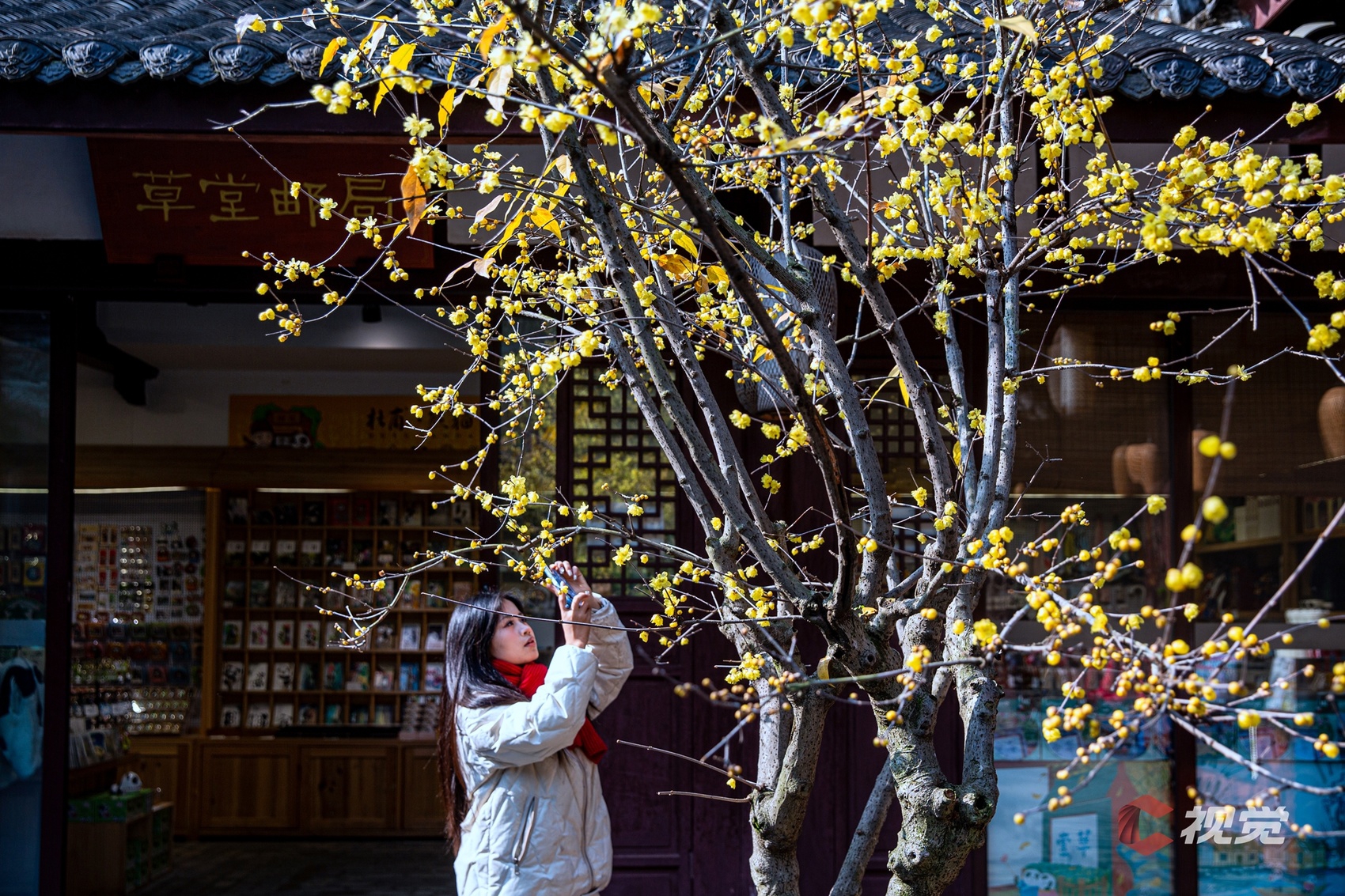 小寒之后,冬日“限定”蜡梅已在成都大街小巷渐次绽放,1月5日,在成都杜甫草堂、人民公园等多处,蜡梅花开,寒枝缀金,游客们争相打卡拍照,留下这冬日的暗香记忆。
