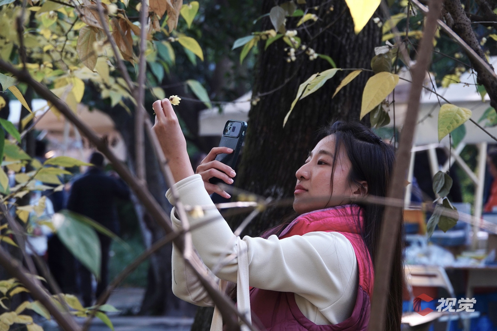 游客在杜甫草堂蜡梅花下拍照。C视觉摄影师 李佳