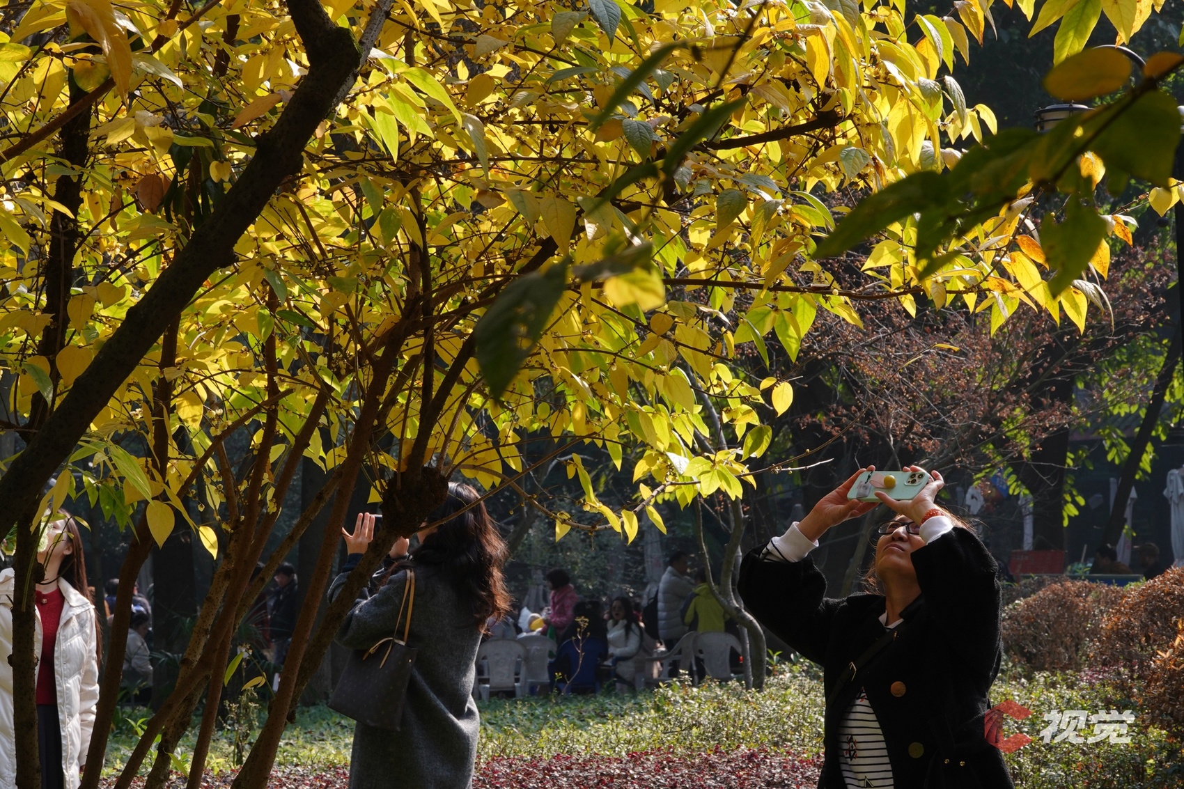 游客在杜甫草堂蜡梅花下拍照。C视觉摄影师 龚全意