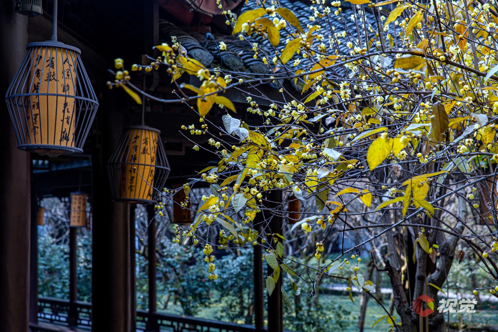 杜甫草堂蜡梅初开,暗香浮动。C视觉摄影师 龚全意