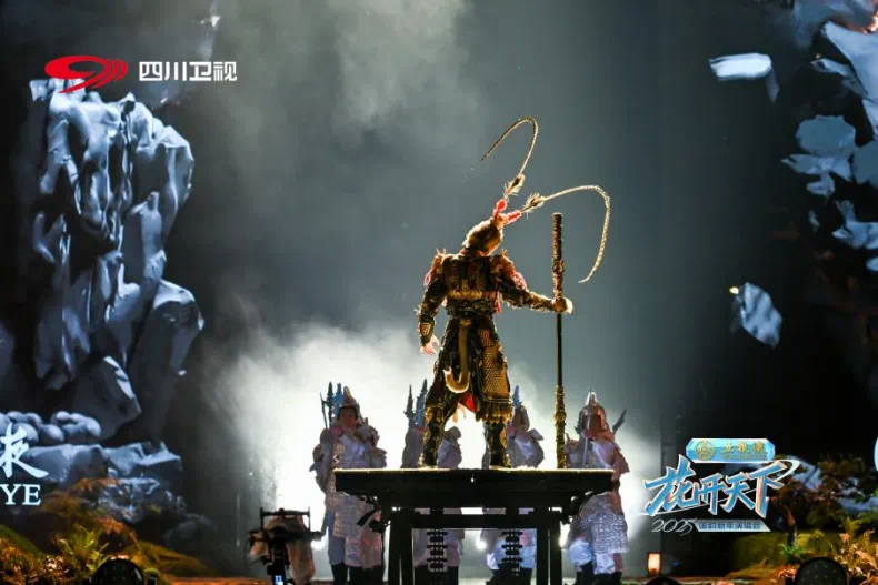 在守正与创新中,2025四川卫视花开天下·国韵新年演唱会再一次突破舞台美学的边界,以裸眼3D、XR、AR等前沿科技重塑舞台视觉体验,营造古今与未来交融的场景。巨人劈山破壁的震撼场景令人仿佛置身奇幻大片,赛博熊猫、银龙等虚拟元素穿梭在巨型冰屏之间,为观众营造出跨越次元的沉浸式体验。在这场时空流转的视觉盛宴中,文化传承的厚重底蕴和时代赋予的新生气息交织碰撞,久久回荡。