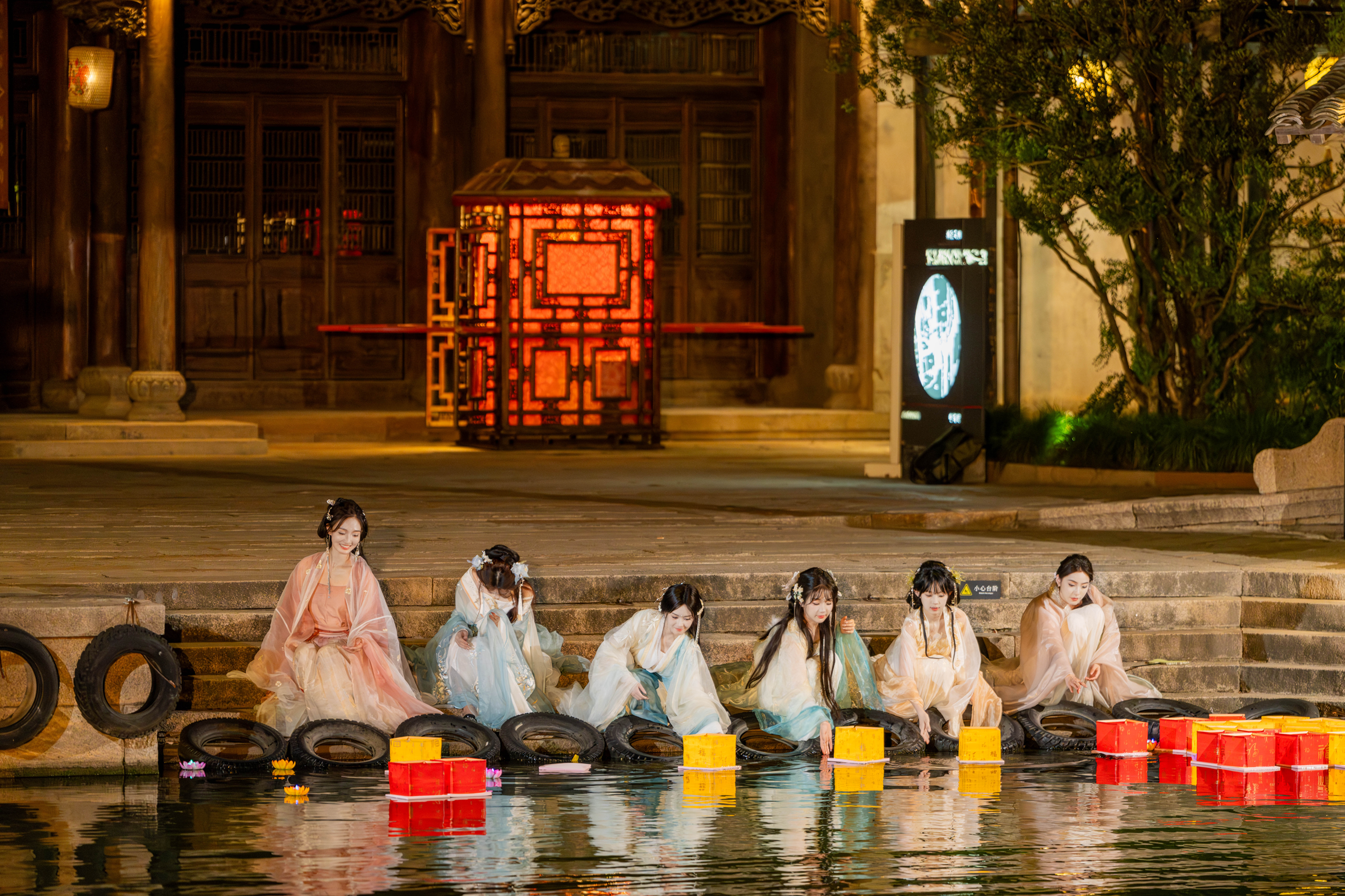 数百架无人机孔明灯也将在春节期间满载美好心愿,重现宋代《梦华录》之中的繁华图景,为游客带来视听盛宴。除此之外,亦有水陆巡游、桐乡三跳等各式演绎轮番登场,提灯走桥等在地年俗点亮水乡之夜,鱼灯跃游棋盘街巷、水上婚礼高甜来“囍”、花船游动妆点水乡幻夜……好戏连连“硬控”每一位到场的游客,不仅让游客沉浸于宋文化的场景之中,还实现了从“到此一游”向“深度体验”的转变,这也是濮院时尚古镇一直坚持的“旅游+时尚”再现。