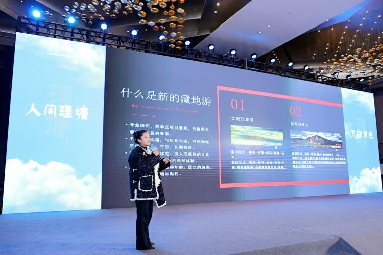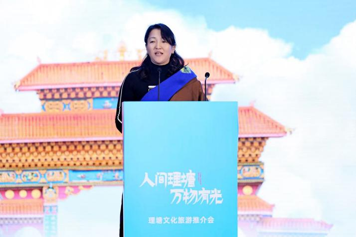 理塘县人民政府副县长格桑卓玛为大会致辞。推介会还邀请到四川省文化和旅游厅二级巡视员王燕林、甘孜州文化广电旅游局四级调研员白西、理塘县国资集团公司董事长丁真降措、理塘县文广局副局长屈智来、理塘县文旅体投资发展有限公司总经理洛绒等领导莅临参会。