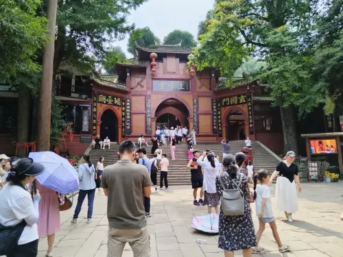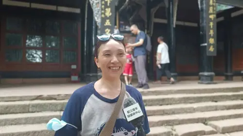8月23日下午,记者也打卡青城山,一路上人流如织,邂逅了从上海、福建等地远道而来的游客,也有德阳、成都附近等川内游客带着家人来打卡,大家跟着古迹、经典游览,感受自是不凡。午后的“秋老虎”依然猛烈,可一进入青城山前山景区,高大的树木、潺潺的溪水、年代感的建筑,似乎把阳光隔绝开来,立时营造了一个清凉的世界。刚从成都某高校研究生毕业的小玫和梨子下午才匆匆赶来,作为年轻人的她俩,被《黑神话:悟空》游戏充满东方韵味的中式美学所震撼,此番前来,怀着深刻的体验感。兴趣相投,我们遂结伴同行。