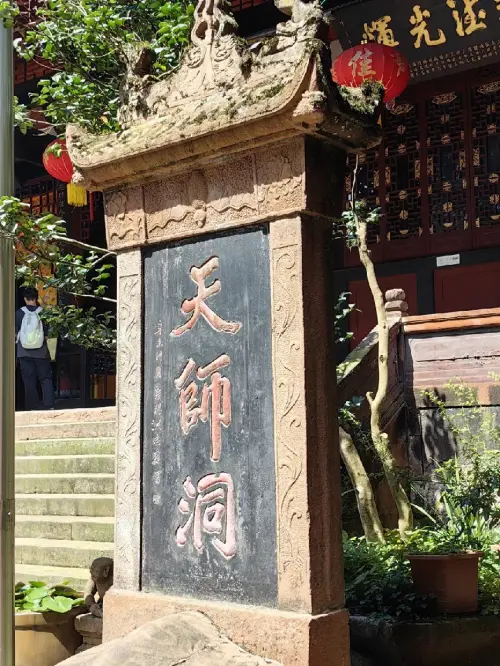 时间已到下午4点。记者顺着上清宫左侧小路下行至天师洞,这一段多是窄小的石板路,但植被更茂盛,环境更清幽,负氧离子更高。抵达天师洞之旅和人生之旅非常相似。不经历攀登,无缘见美景,在十字路口,有些道路开始时截然相反,最后却殊途同归,有些道路好像是一个方向,最后却大相径庭。遥想当年,“猴哥”拜师之路亦是经历波折。