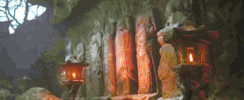 游戏实机画面,取景地为安岳石窟。