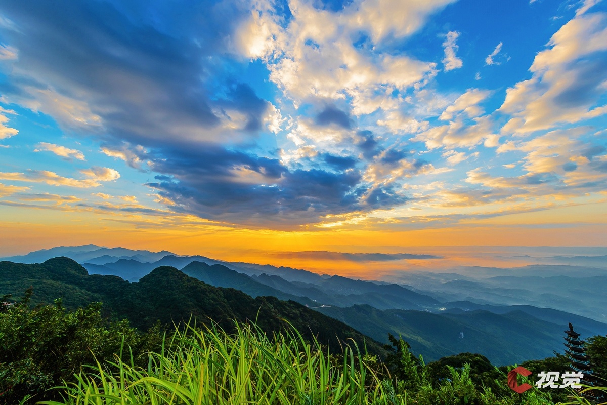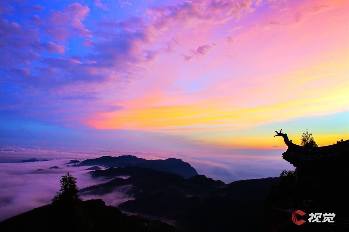 在华蓥山宝鼎观彩霞满天