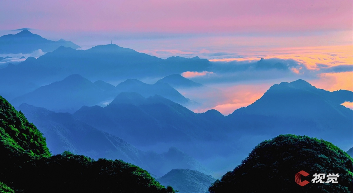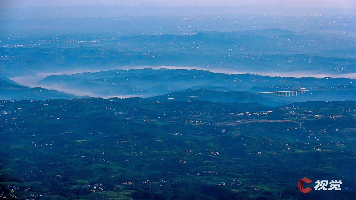 在华蓥山宝鼎极目远眺,蜿蜒的河流犹如大地蛟龙