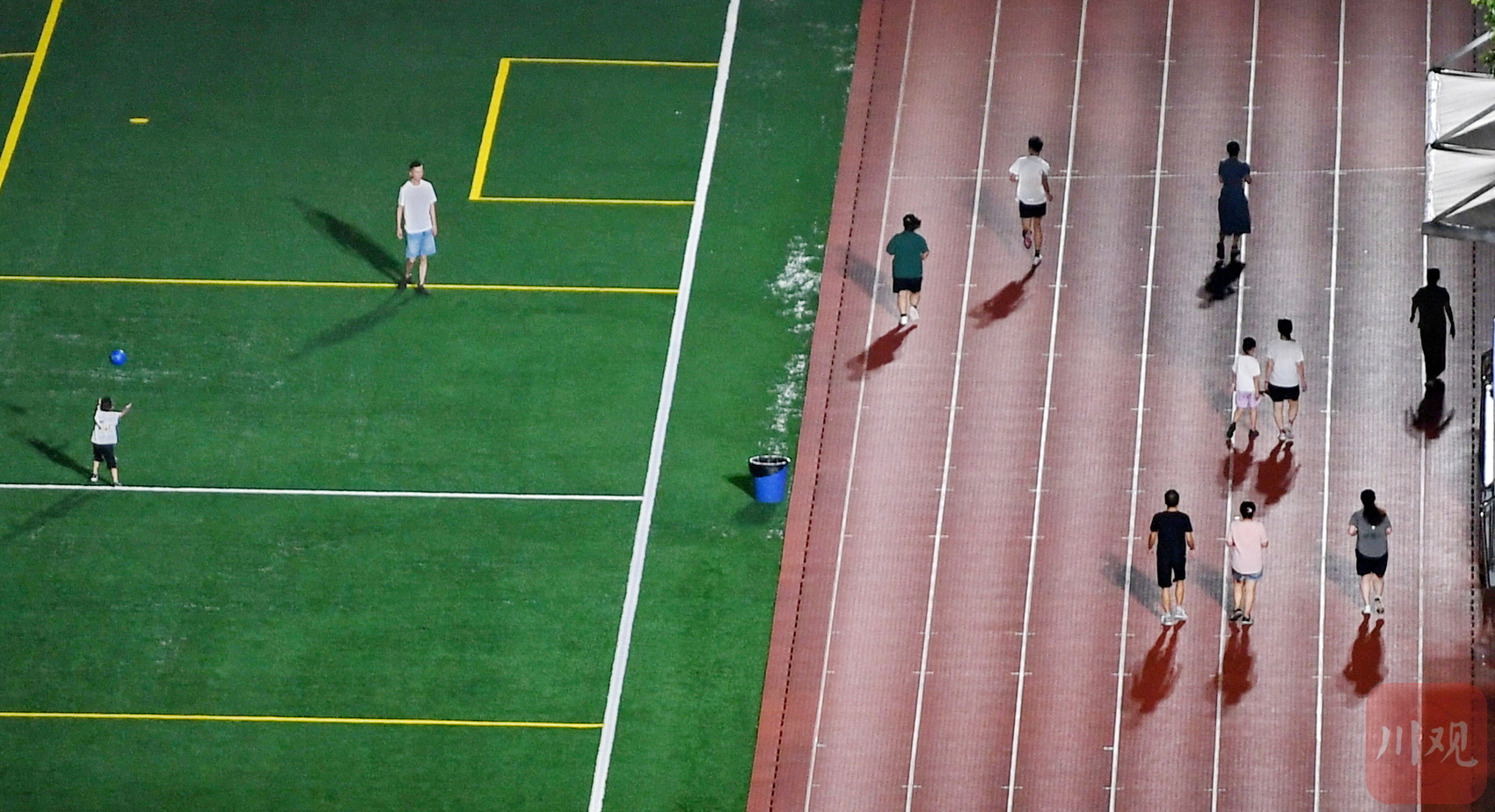 2024年8月9日晚,市民在成都双流体育中心夜跑。