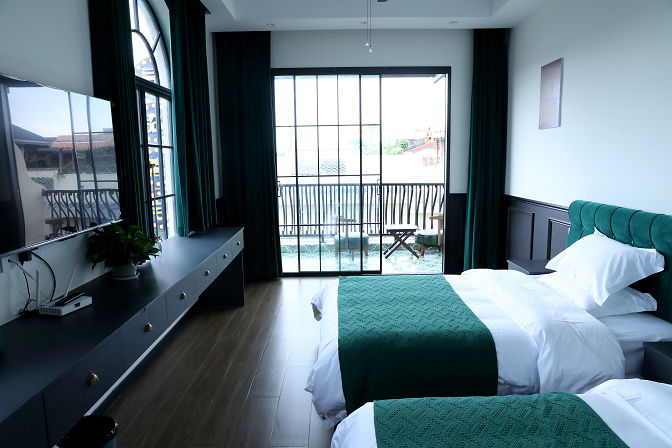 由于开业还不足一个月,寻弥·禧宅民宿目前初步形成了以下午茶为主的经营模式,同时也在不断完善餐饮、住宿等服务项目。为了确保服务质量,民宿仅设置了14间客房供游客入住,房间内部设计则干净敞亮、舒适精致,其中12个房间都配套露台供游客欣赏美景。住宿价格也比较便宜,在100元至400元之间。每个房间都以古时文人对“风、雨、雷、电”的雅称命名,恰如其分地融入了古典韵味与文化底蕴。