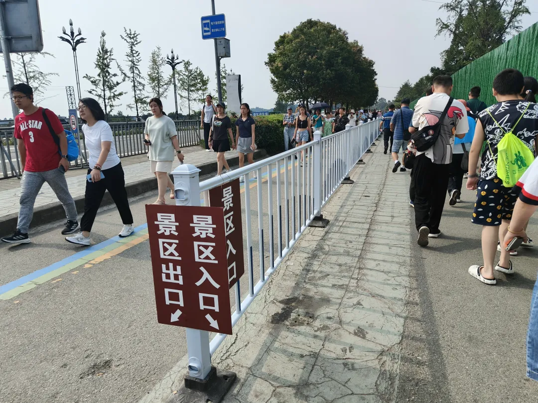 上午10时左右,记者在熊猫谷门前看到,游人络绎不绝 ,兴致勃勃地进入景区。虽然道路上的车辆、行人非常多,但进出有序,没有出现拥堵等现象。网约车、出租车、景区直通车、私家车停放区域合理划分,各类交通标识醒目,周边交通情况井然有序。“上周,我们协调熊猫谷在大门口设置了隔离栏,让游客不在门口横穿马路,造成拥堵;同时在人行道中间设置了隔离栏,让进出熊猫谷的游客有序地分道而行。”玉堂街道办副主任尹肖告诉记者。