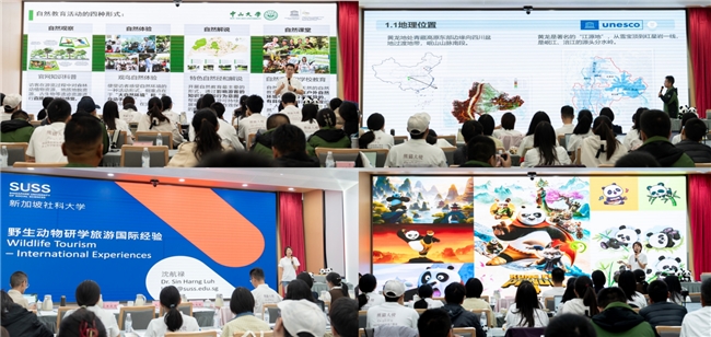 开营仪式后,复旦大学张朝枝教授、黄龙风景名胜区管理局科研处处长助理陈治霖、新加坡社科大学Sin Harng Luh副教授分别为营员开展了《“熊猫大使”的使命:传统知识转化为遗产友好的生计资本》《黄龙世界自然遗产的保护与发展》《野生动物研学的国际经验》的主题讲座,系统地介绍了“熊猫大使”项目理念、黄龙世界自然遗产保护与发展做法、野生动物研学旅游的国际经验。