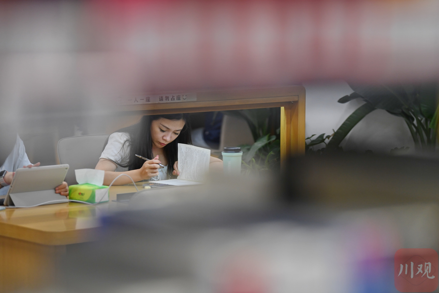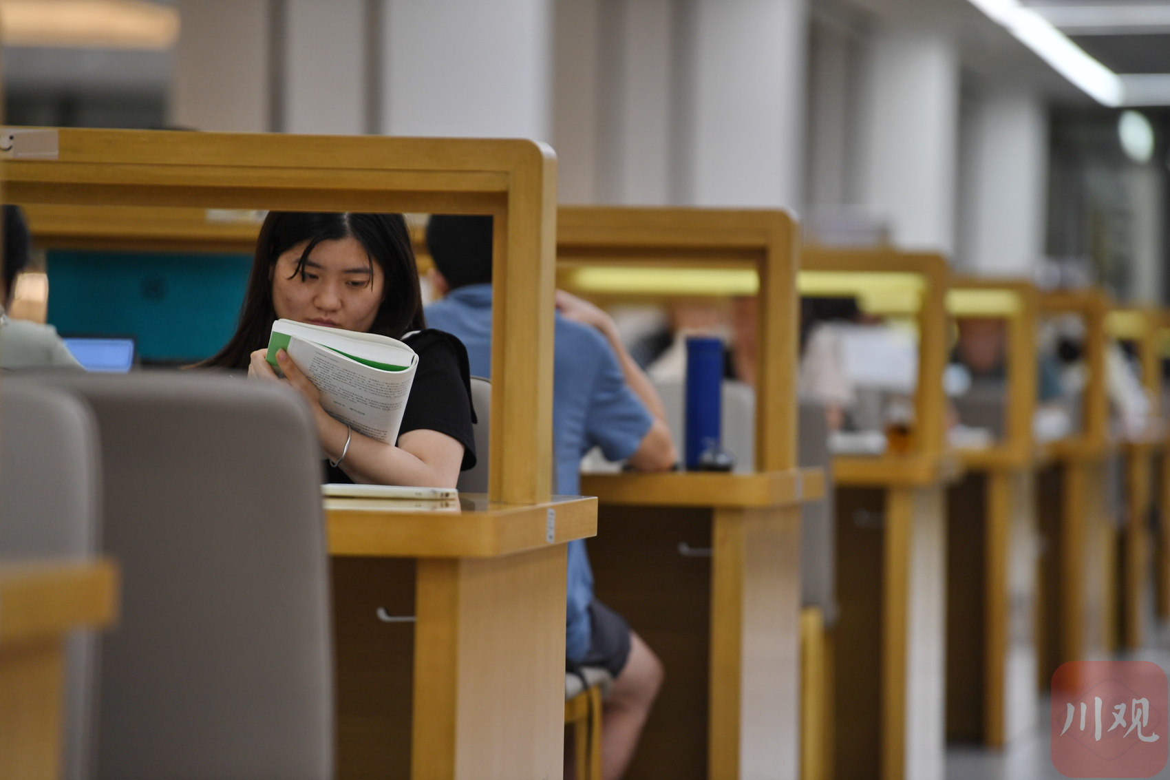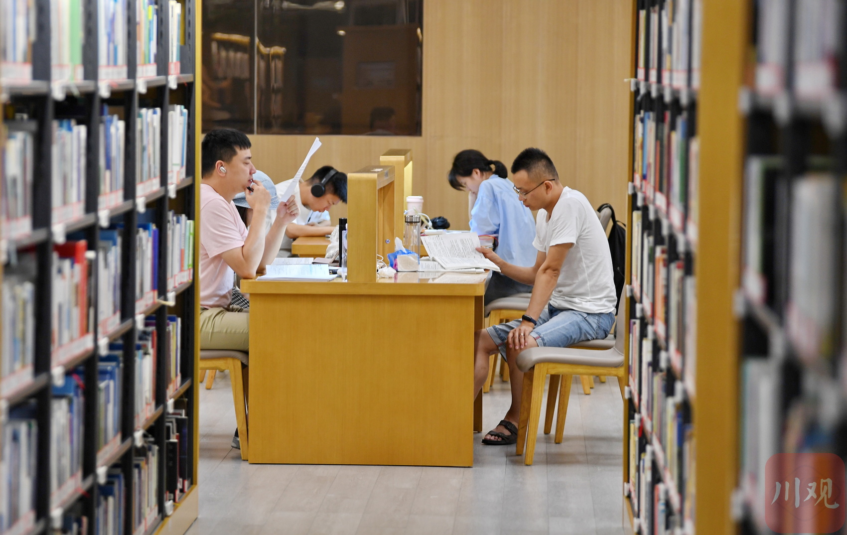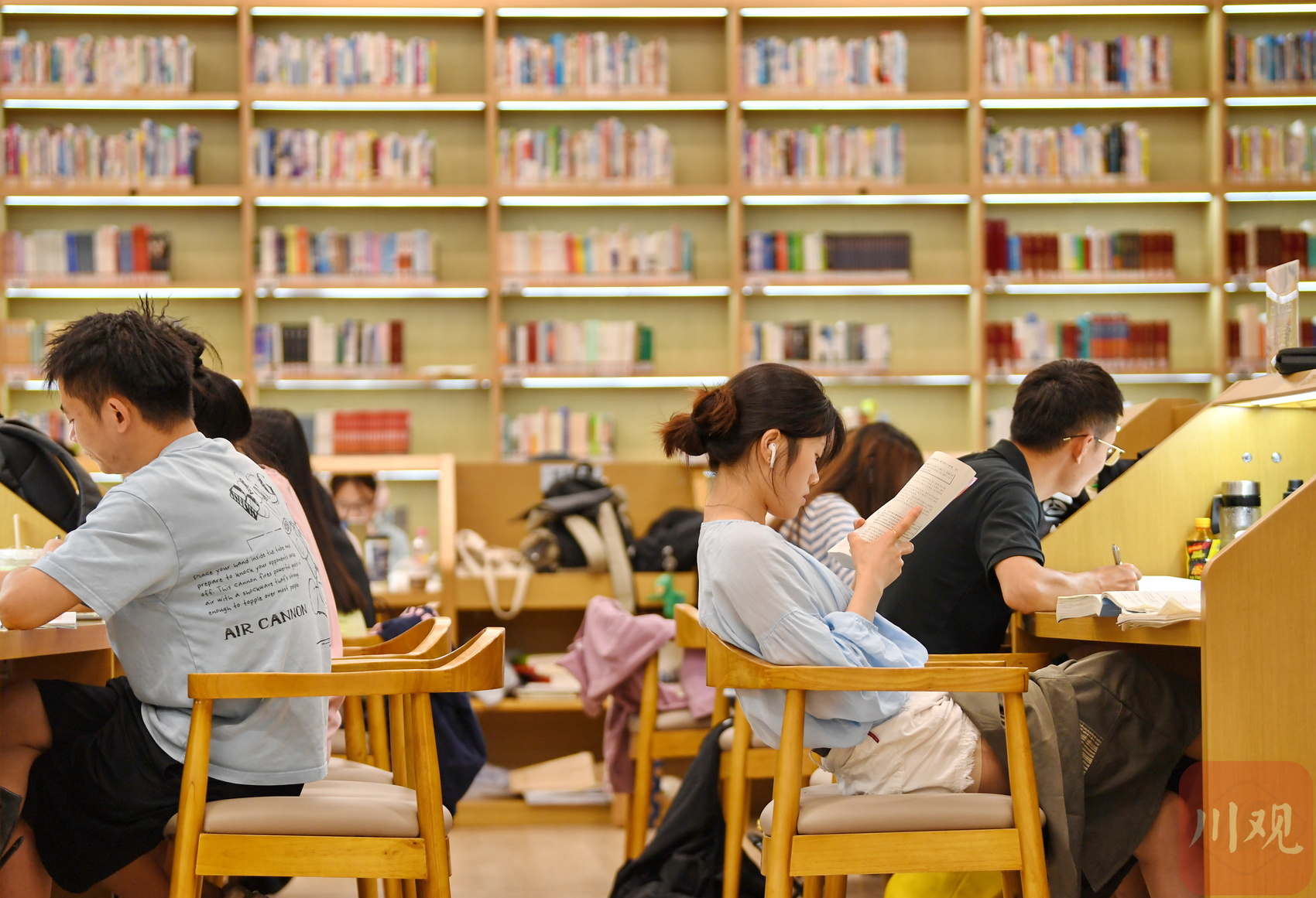2024年7月28日晚,读者在成都高新区图书馆里学习。