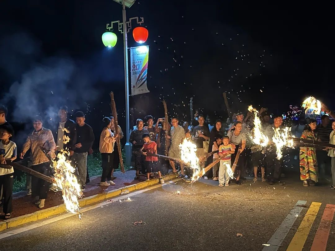 景区还免费为游客们发放了火把,游客们点燃火把,舞动火把,祈求幸福平安。