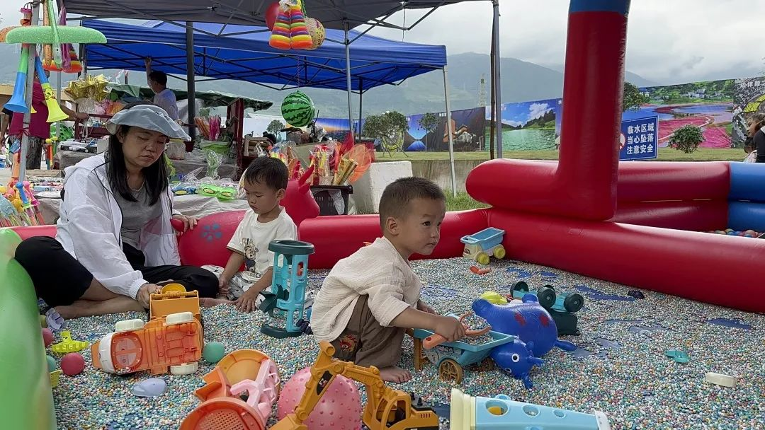 在水韵花红国家AAAA级旅游景区牧野嶲水露营地,众多游客或骑多人自行车,或乘坐观光车,或步行,徜徉在果香四溢的景区里。露营地设置了“趣味格子”“身临其境”轨道影院、“我爱竞技”射箭比赛等活动,游客们玩得不亦乐乎。