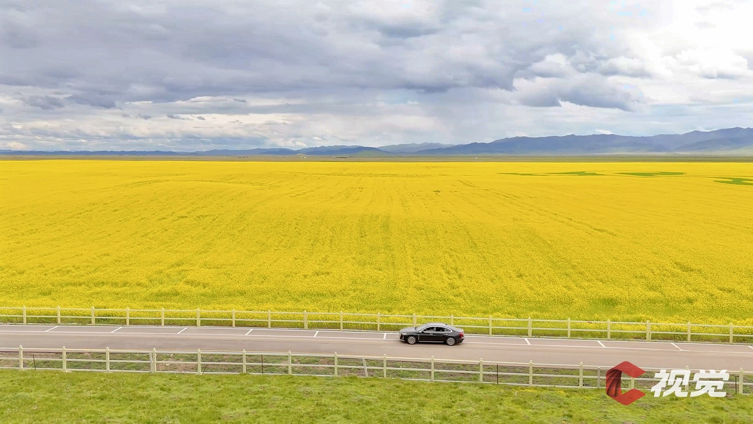 若尔盖县唐克镇的万亩油菜花田吸引众多游客慕名而来。